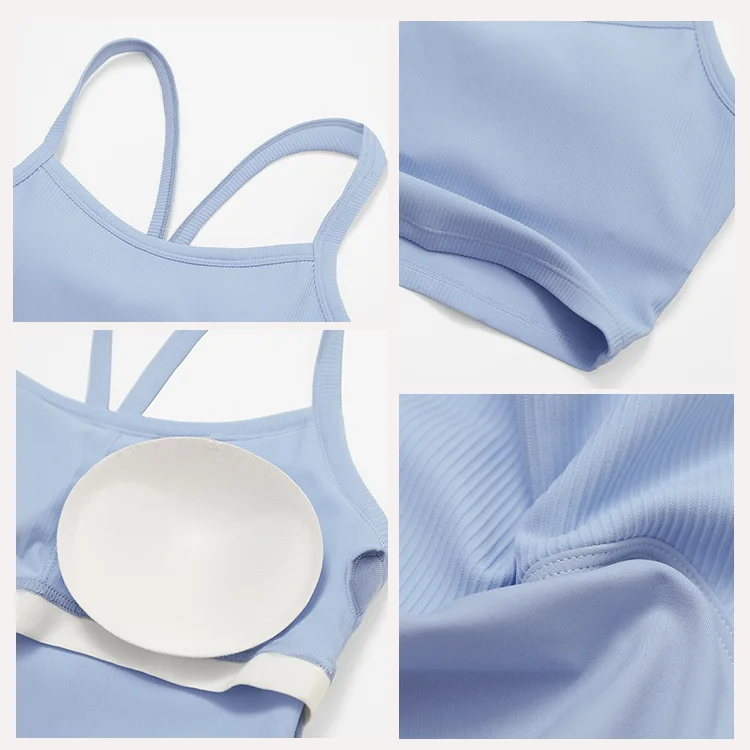 Nude-feeling High Support Breathable Eco-Friendly Halter Yoga Bra Beautiful Back Seamless Front Logo Backless Design for Women